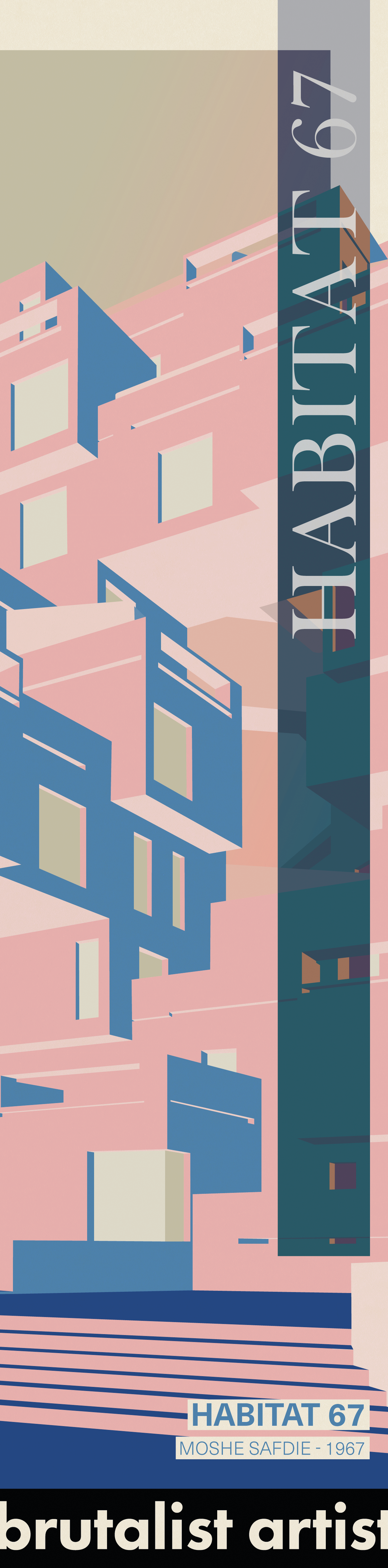 Before I had set out to create these drawings my explorations had already indicated there existed simplified and minimalist representations of brutalist buildings but nothing with the detail and surreal colours I desired. This would fundimental to these prints, the rejection of the existing conception of brutalist buildings in digital art. The abstraction of materiality and rejection of shadows would leave just form with simple backgrounds of cropped gradients to protect the buildings from the page.